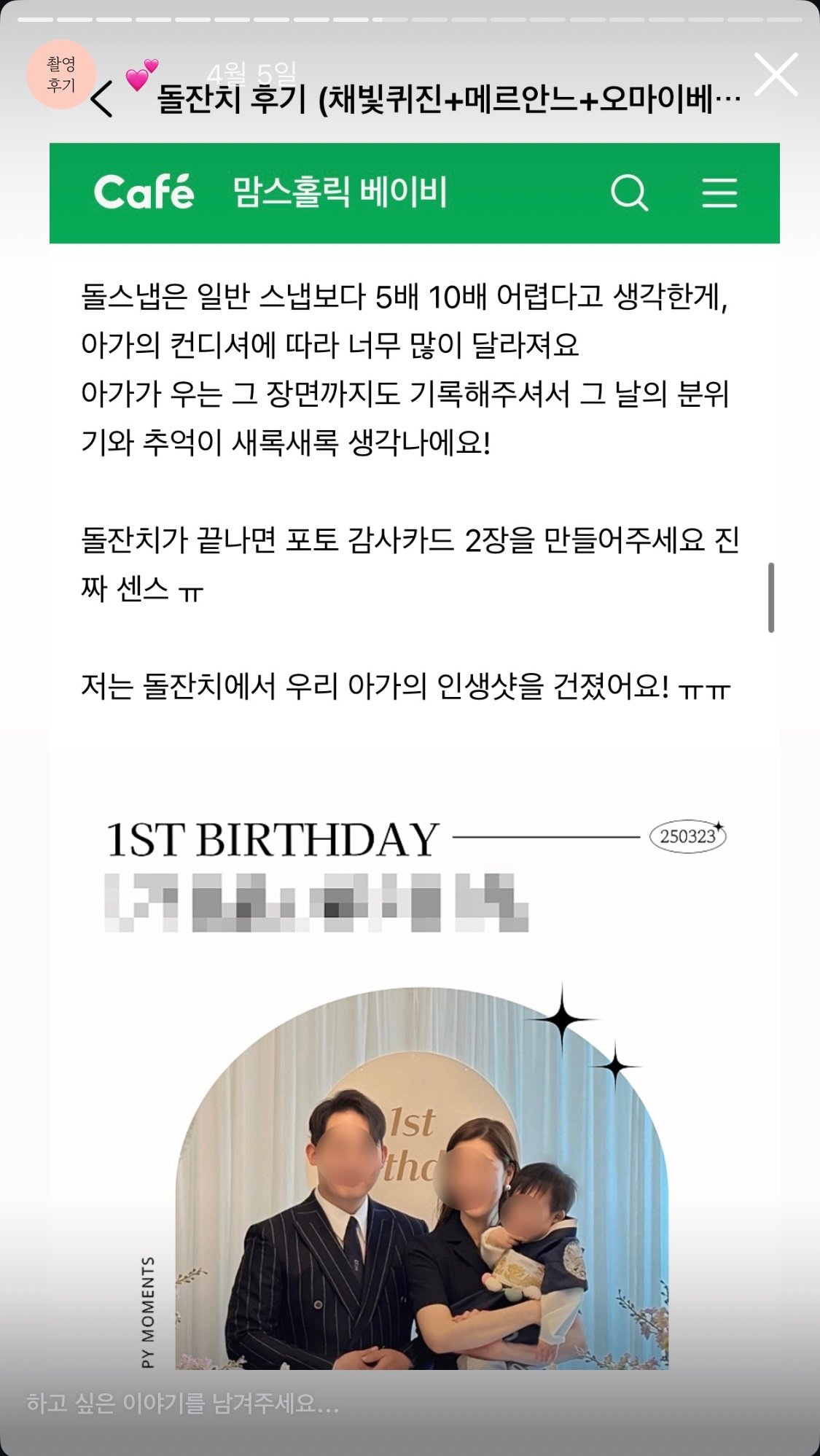 그 곳에서 진행된 돌잔치 후기를 가져왔습니다.