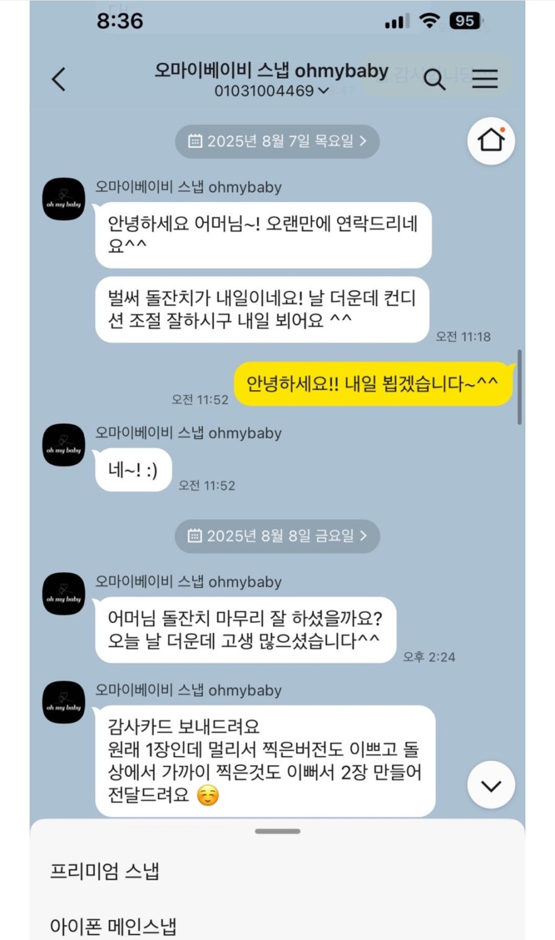 | [돌스냅 후기] 디앤소 스튜디오 2호점 돌잔치 (2) | 2025.08.14 |