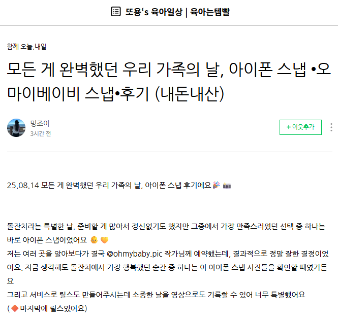 모든 게 완벽했던 우리 가족의 날, 아이폰 스냅 •오마이베이비 스냅•후기 (내돈내산)
