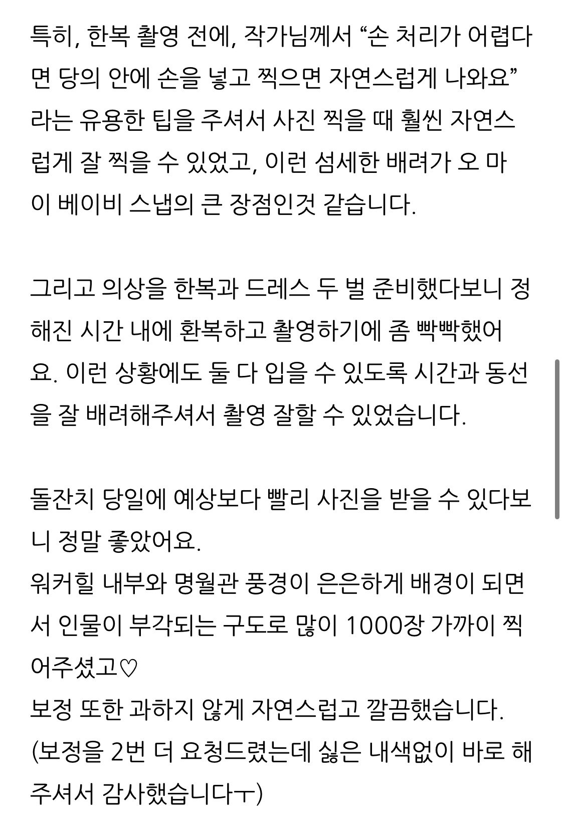 어머님이 그 날 사진은 물론 저의 세심한 챙김에 반하여, 다음 돌잔치(사정상 돌잔치 2번 하시는 고객님) 촬영에 메인으로 절 섭외하려고 하셨지만, 안타깝게도 제가 이미 촬영일정이 있어 거절할 수 밖에 없었던 슬픈 사연이 있답니다 ㅠ