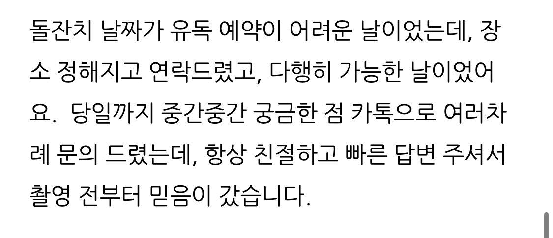 그러자 그럼 두돌잔치 때 다시 연락드리겠다는 어머님의 말에, 정말 힘이 나고 행복했던 기억이 있습니다.